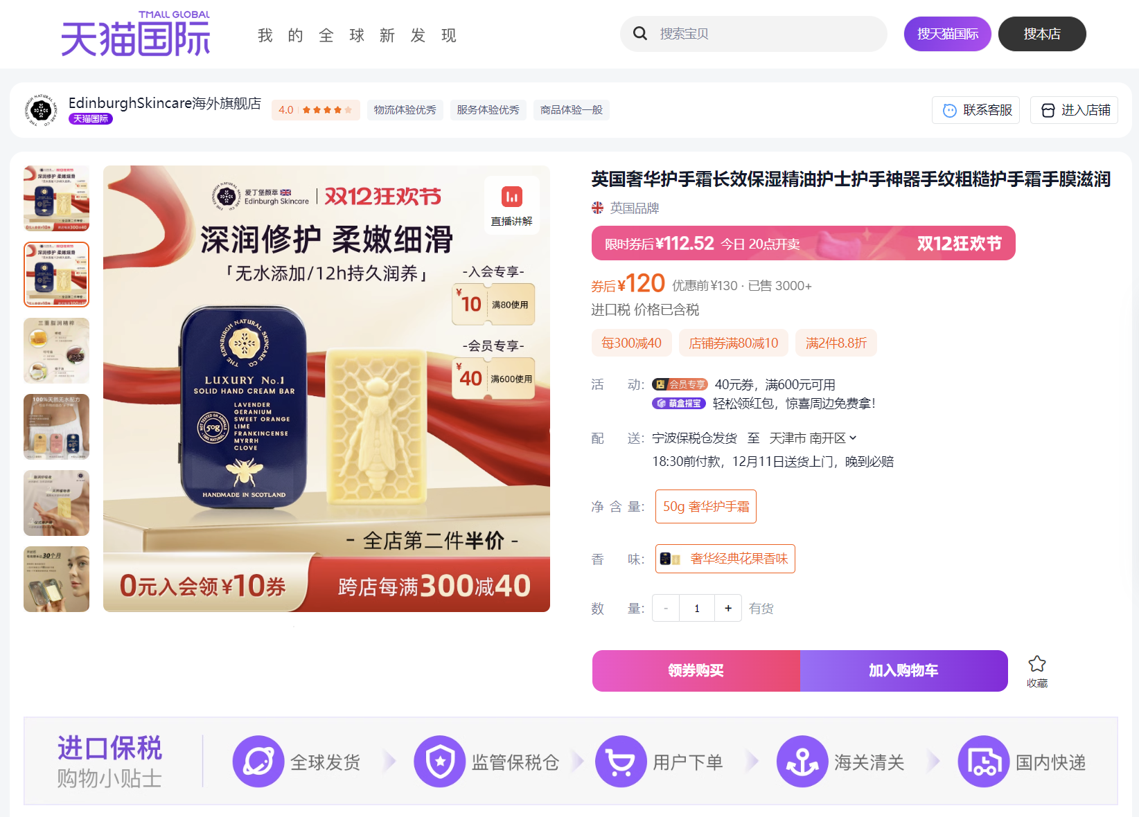 The Edinburgh Natural Skincare Company – a luxury brand of skincare products, launched their Chinese online shop from 2021.
